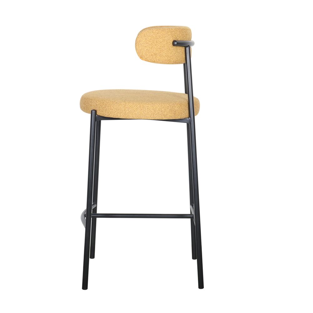 Its tubular steel frame provides great strength and stability, while the black paint finish gives it a sober and sophisticated look that is easy to combine with different color palettes and decorative styles. This contrast between the industrial feel of the metal and the warmth of the upholstery makes the Abbor stool suitable for both modern minimalist environments and more eclectic spaces that seek a contemporary touch.
