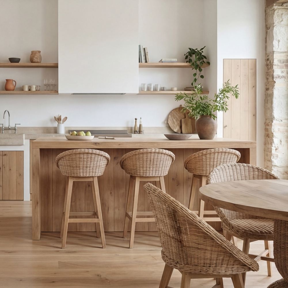 With its Mediterranean style, the Aiko stool is ideal for kitchens, open dining rooms, or indoor terraces, creating cozy and fresh atmospheres. Its aesthetics blend perfectly with modern, rustic, or boho environments, thanks to its balance between simplicity and detail.