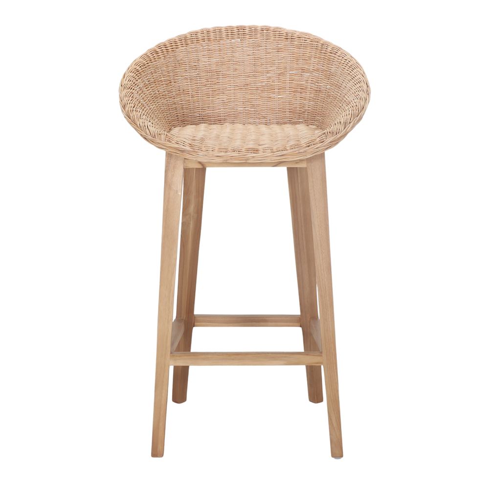 Arden wood and synthetic fiber high stool, Mediterranean style.