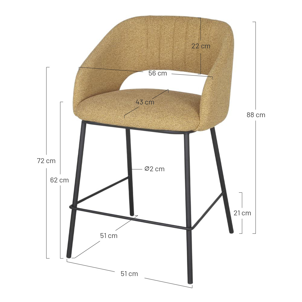 The upholstered and metal-framed Arvely stool combines elegance and functionality in a modern and versatile design. Its upholstered seat offers exceptional comfort, perfect for long gatherings or moments of relaxation. The metal frame provides a robust and durable base, ensuring stability and resistance to daily use. This stool is perfect for both domestic and commercial environments, easily adapting to various styles of decor. Its clean and contemporary design makes it an ideal choice for kitchens, bars, or waiting areas, adding a touch of sophistication and comfort to any space.