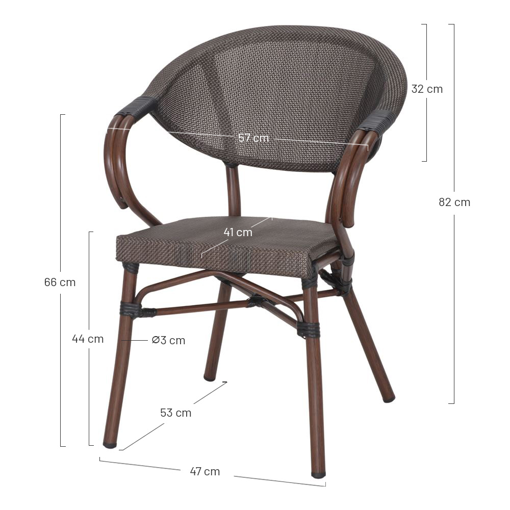 Measurements: 57x57x82 cm | Seat height: 44 cm | Armrests: 66-75 cm