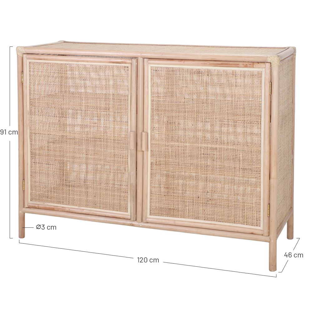 Sideboard with 2 doors made of natural bamboo with rattan grille fronts.