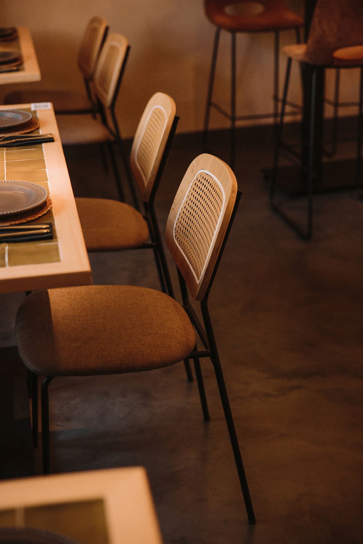 Originality and comfort are at the heart of the Bayton upholstered chair ‘s design. Its fabric upholstery will provide a soft touch and a comfortable seat as well as a warm and welcoming look to your indoor space. Its backrest in wood and grid will provide an organic touch. Cushioned in foam, this upholstered chair is ultra comfy, which makes it a perfect dining room chair. To make this upholstered chair shine we can combine it with a big dining table.