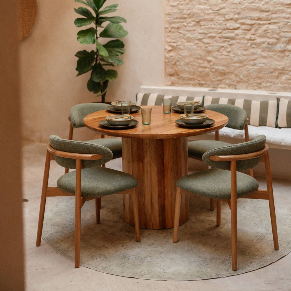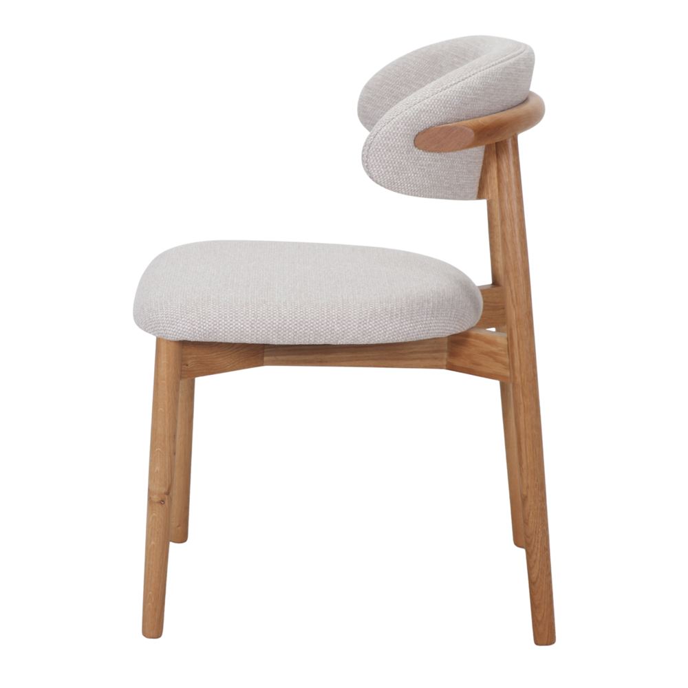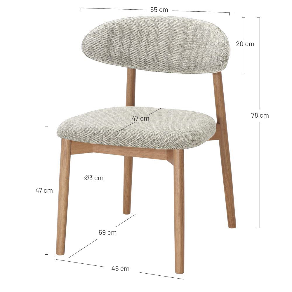 The seat and back are delicately upholstered in texil, a soft, durable material that adds a touch of comfort and sophistication. The combination of turned wood and texil creates a harmonious contrast that reflects the Scandinavian aesthetic and integrates easily into a variety of interior spaces.
