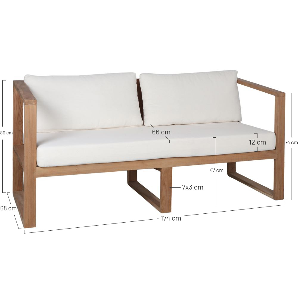 Measurements: 174x68x80 cm | Seat height: 47 cm | Armrests: 74-80 cm | Cushion thickness: 12 cm