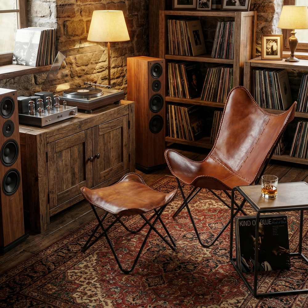 Our Butterfly caramel leather armchair is an elegant designed armchair, very functional and ergonomic. It’s a detechable leather armchair, so transportation is really easy. It’s ideal for any room of your house: you can place it in a reading corner in your living room, with a low wooden coffee table and you will have the perfect spot to chill out.