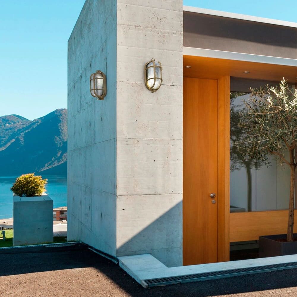 The Cabo wall light is perfect for an Industrial style space. Made of brass and carved opal glass, this wall lamp also fits in vintage style spaces or even nautical airs.