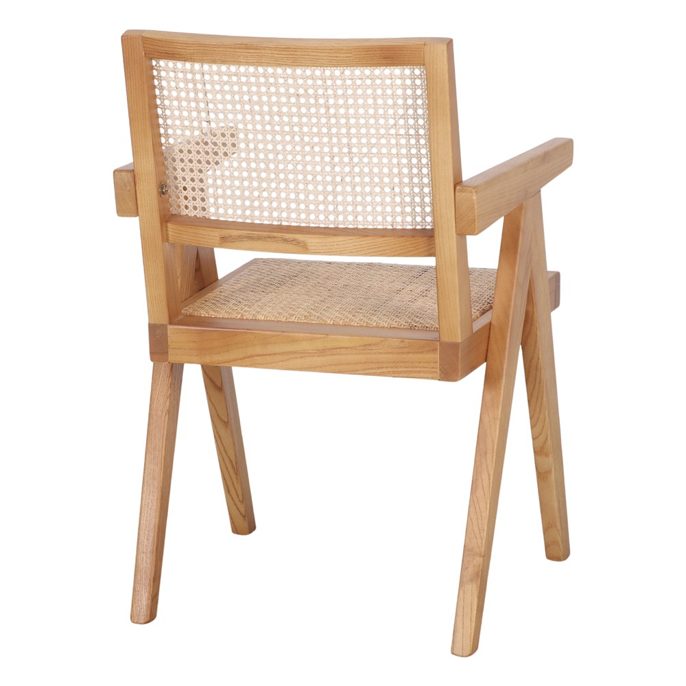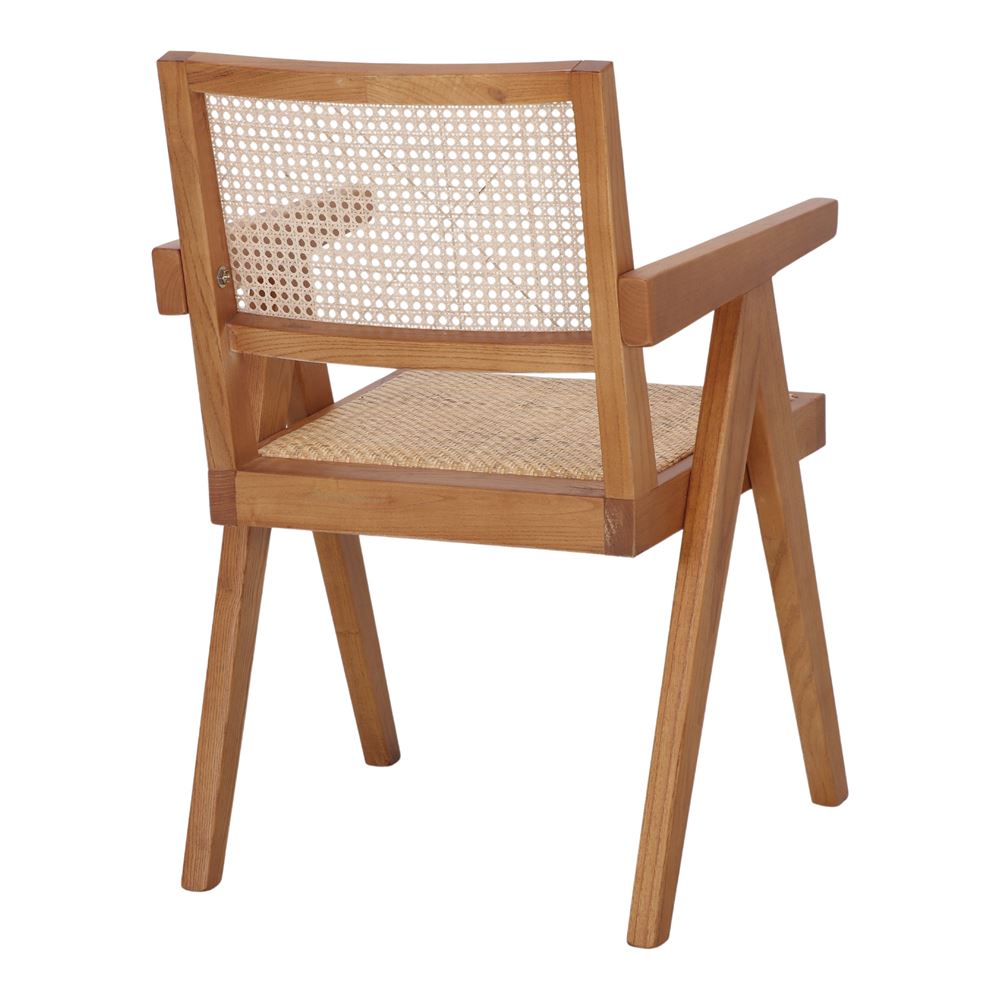 The Capitol wooden chair is a classic chair following the Rationalist style, with its frame made of solid elm tree wood, and its seat and backrest made of rattan grid. Transparent varnish finishing. An ideal chair for a living room, a studio, or a reading corner.