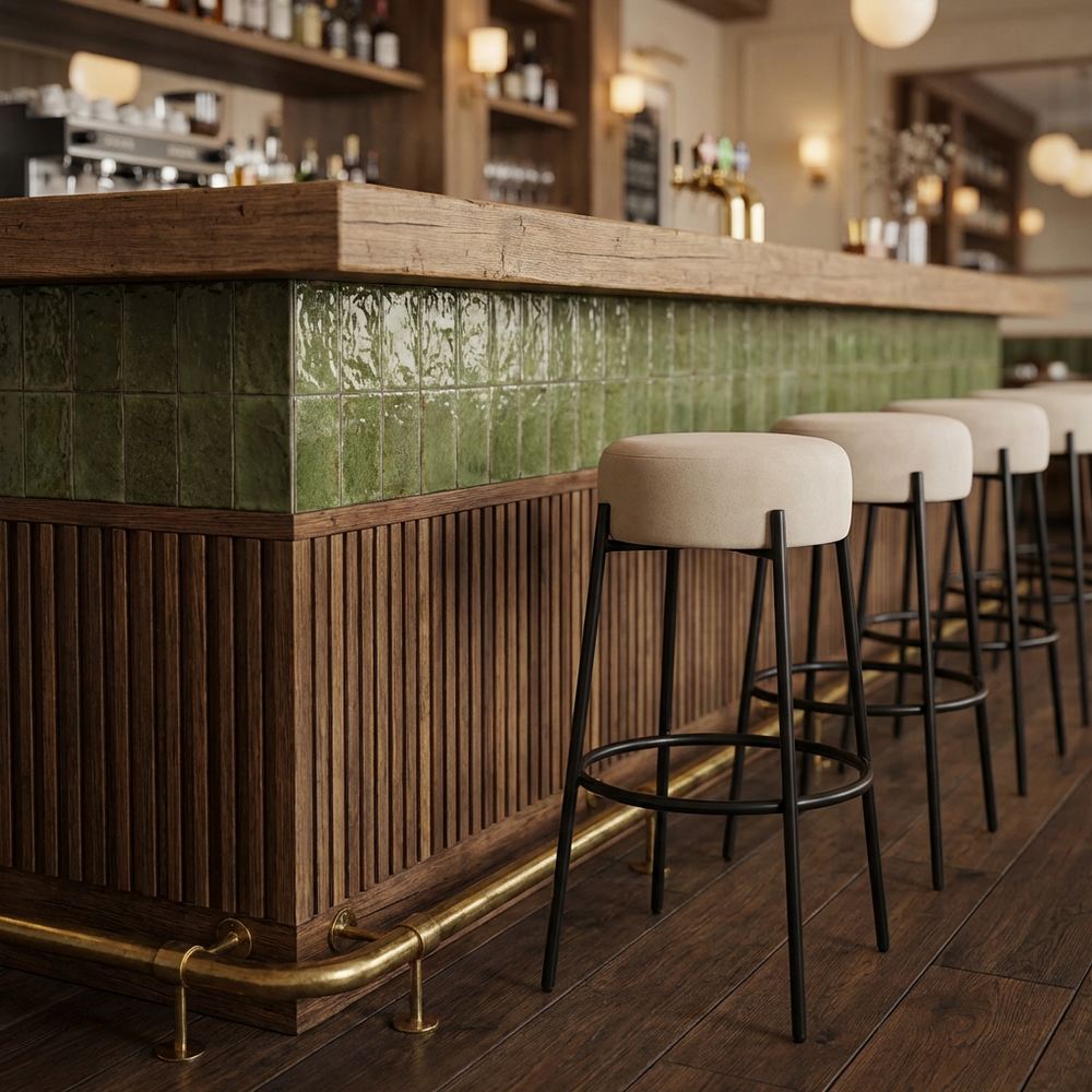 The Cosmo stool stands out for its minimalist design and timeless elegance. With an upholstered seat, it offers refined aesthetics and discreet comfort, perfect for spaces where style and functionality go hand in hand.