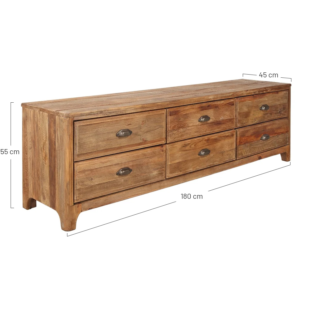 Made from recycled pine wood with 6 drawers.