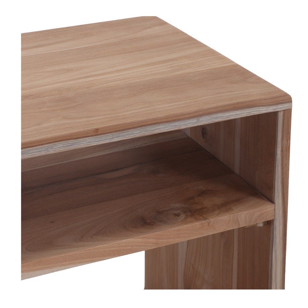 Our Lenny night stand is made of teak wood, known for its durability and natural beauty. Its elegant and functional design includes a shelf and offers ample storage space. The texture and warm tone of the teak bring a cozy and sophisticated touch to the bedroom, while its solid structure ensures durability and stability. Perfect for complementing any decoration style, this bedside table combines practicality and aesthetics in a single piece of furniture.