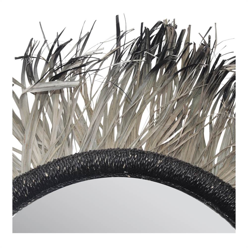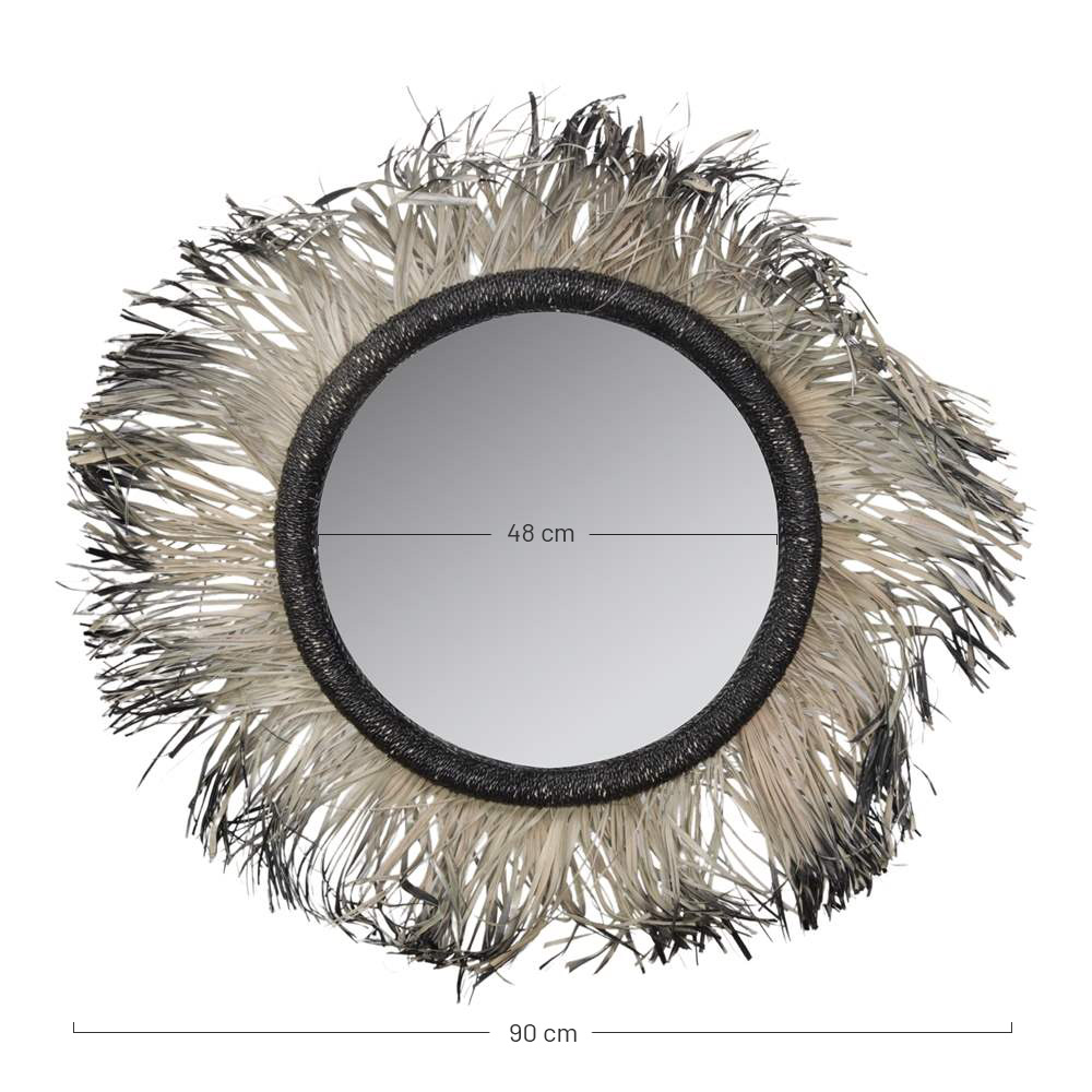 Circular mirror of Ø48 cm with black braided esparto grass frame.