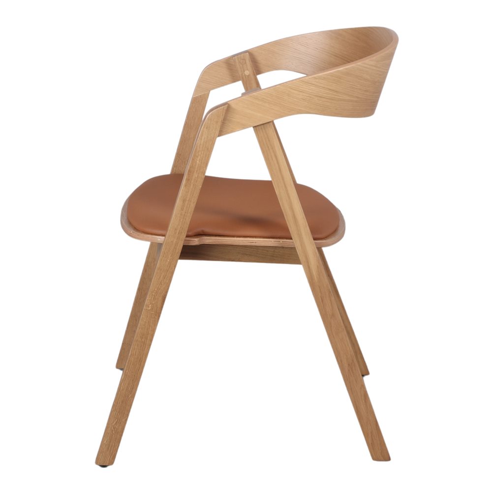 The Franky wooden chair, contemporary style is a sleek and modern option for the home or office. It is made of oak wood and plywood, which is known to be strong and durable, making it a popular choice for high quality furniture, and features PU upholstered seat and back. These chairs tend to have clean, minimalist lines, with smooth finishes and neutral colors that suit any environment. In addition, oak plywood is easy to work with and can be molded into various shapes, allowing for creative and bold designs. These chairs are ideal for complementing a contemporary space, adding a touch of elegance and sophistication. Their ergonomic design makes them comfortable to sit in for long hours, making them a practical and aesthetically pleasing choice.