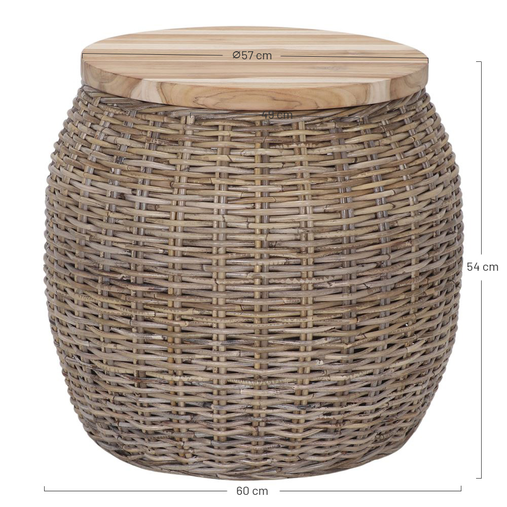 Made of natural rattan with wooden top.