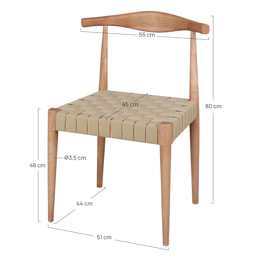 The Ghost wooden chair is a trendy piece. Mid Century style, it is ideal for rooms with character and personality, providing distinction with its braided webbing seat. Its combination with wood and its elegant curve in the backrest are the recipe for an original piece that will give a Scandinavian touch to your dining room. The seat is made of polypropylene webbing and provides all the expected comfort.