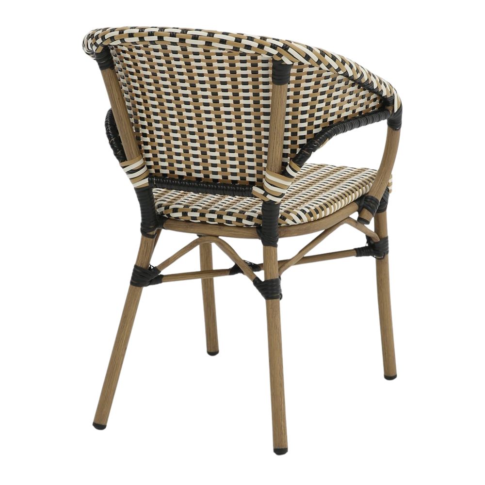 The seat and backrest are made of braided synthetic rattan pith, a material specially designed to withstand the elements, providing flexibility, comfort and a handcrafted finish reminiscent of traditional European deck chairs.