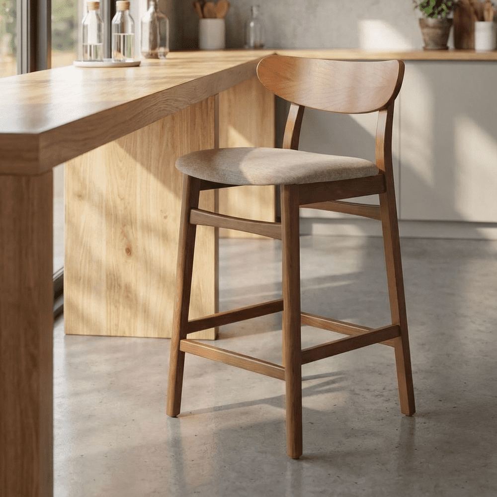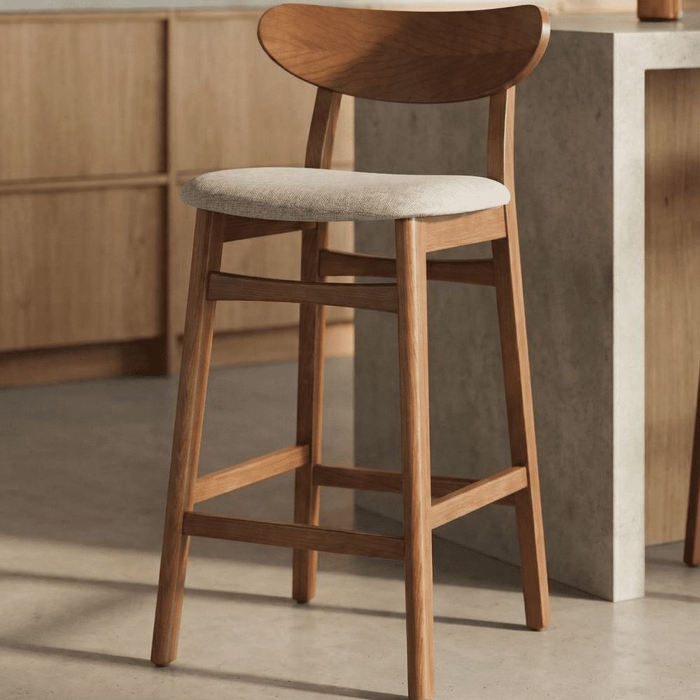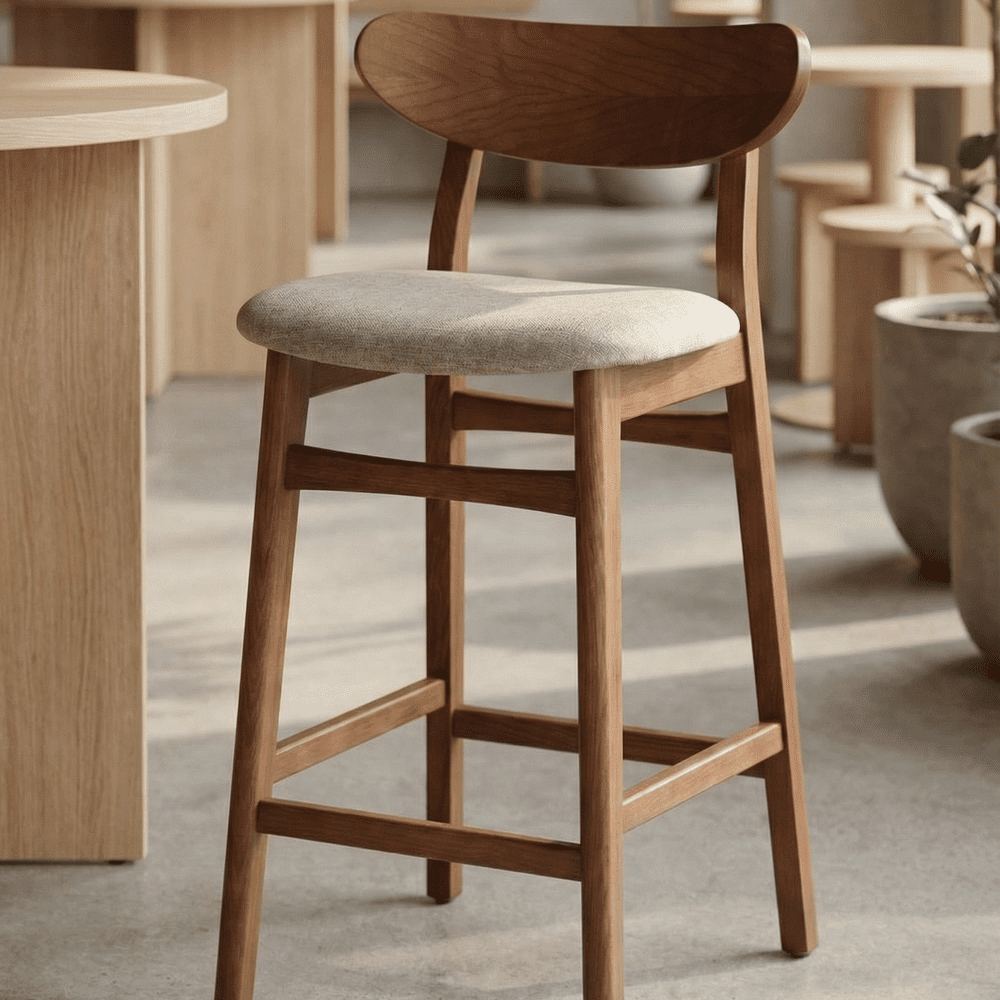 The Nordic trend will be waiting for you in the bar area of your restaurant or in your dining room. With its bi-material design, this wooden high stool will bring fashion and softness to your bar. The wooden structure, backrest and footrest make this high stool a sturdy accessory but also very comfortable thanks to its upholstered seat. With an incomparable elegance, this type of wooden high stool can easily fit into a modern or classic space. A true icon of interior design, make no mistake by integrating this stool in your interior.