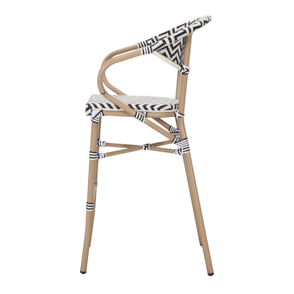 The seat and backrest are made of braided synthetic pith, a material that reproduces the warmth of traditional rattan, but with greater resistance to humidity and temperature changes. Its ergonomic design provides a comfortable experience of use, allowing for long after-dinner meals or moments of relaxation outdoors.