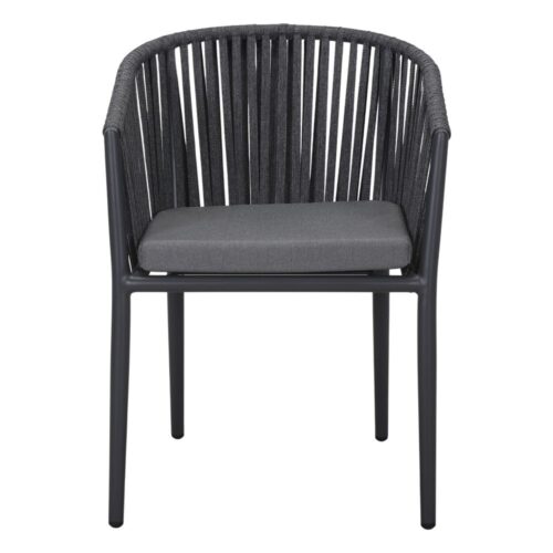 We love for example, their very characteristic rope chairs and loungers in red. Inspired by them, we took for a walk the Agosta rope chair, Contemporary style, with tubular steel structure finished in paint and seat and back in polyester rope. In this case, it includes a cushion, which ensures extra comfort. It is also suitable for outdoor use, as long as it is under cover.