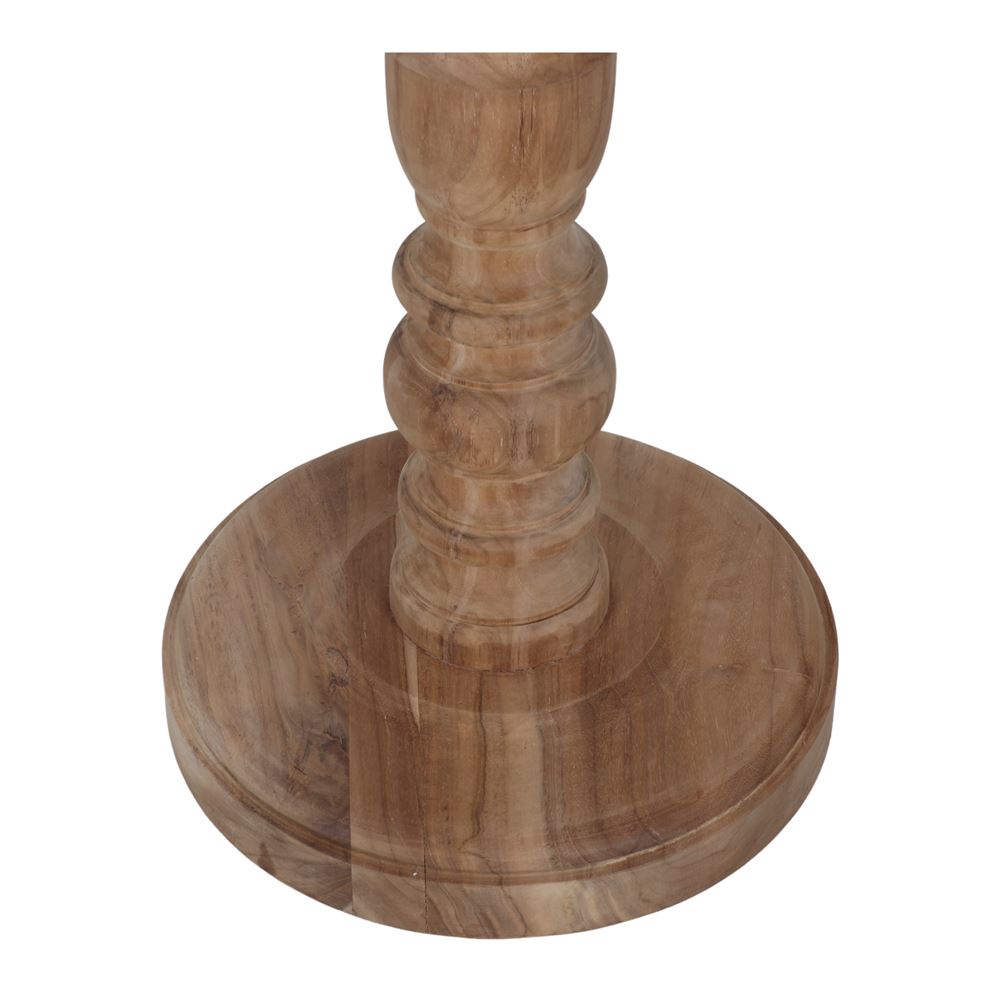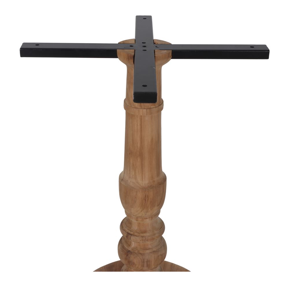 With a height of 73 cm, the Jasper table frame provides a solid, balanced base for tables max. 80 cm in diameter. The metal top cross brace not only reinforces stability, but also adds a decorative element that complements the teak wood, creating a harmonious fusion of classic and contemporary.