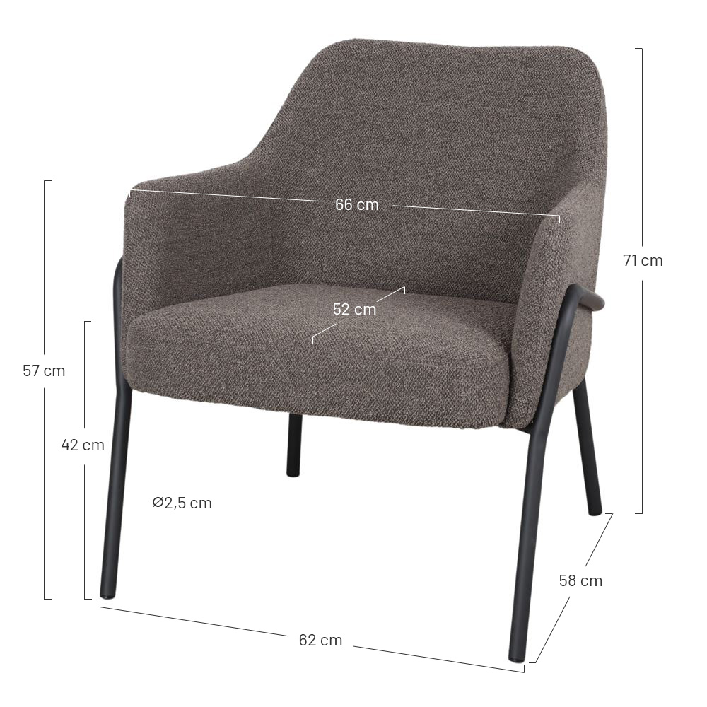Measurements: 66x70x71 cm | Seat height: 42 cm | Armrests: 57 cm