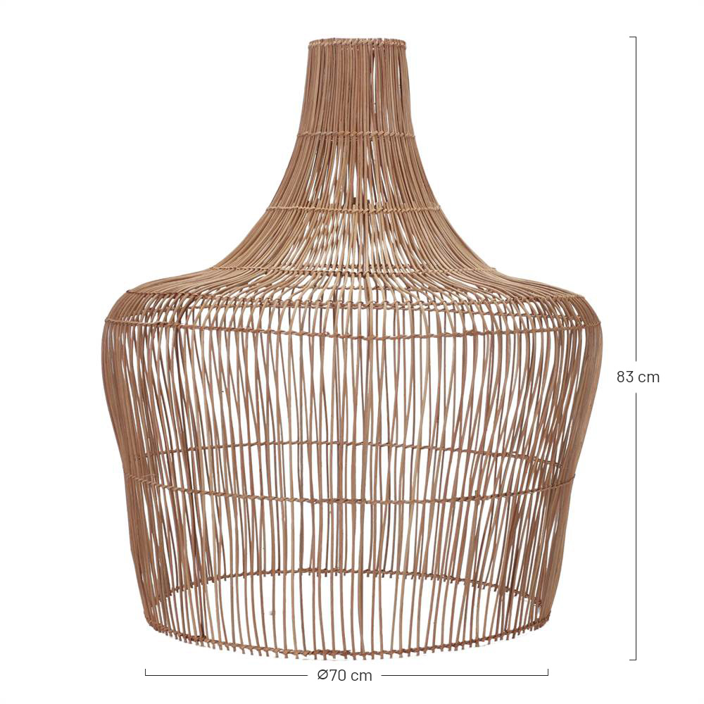 The Kooper rattan lampshade is a ceiling lampshade made of natural rattan, with natural finishing. This ceiling lampshade with cage or basktet shape follows the Nordic style. It will look amazing with a warm temperature incandescent filament bulb (electrical installation not included), creating a warm and welcoming environment.
