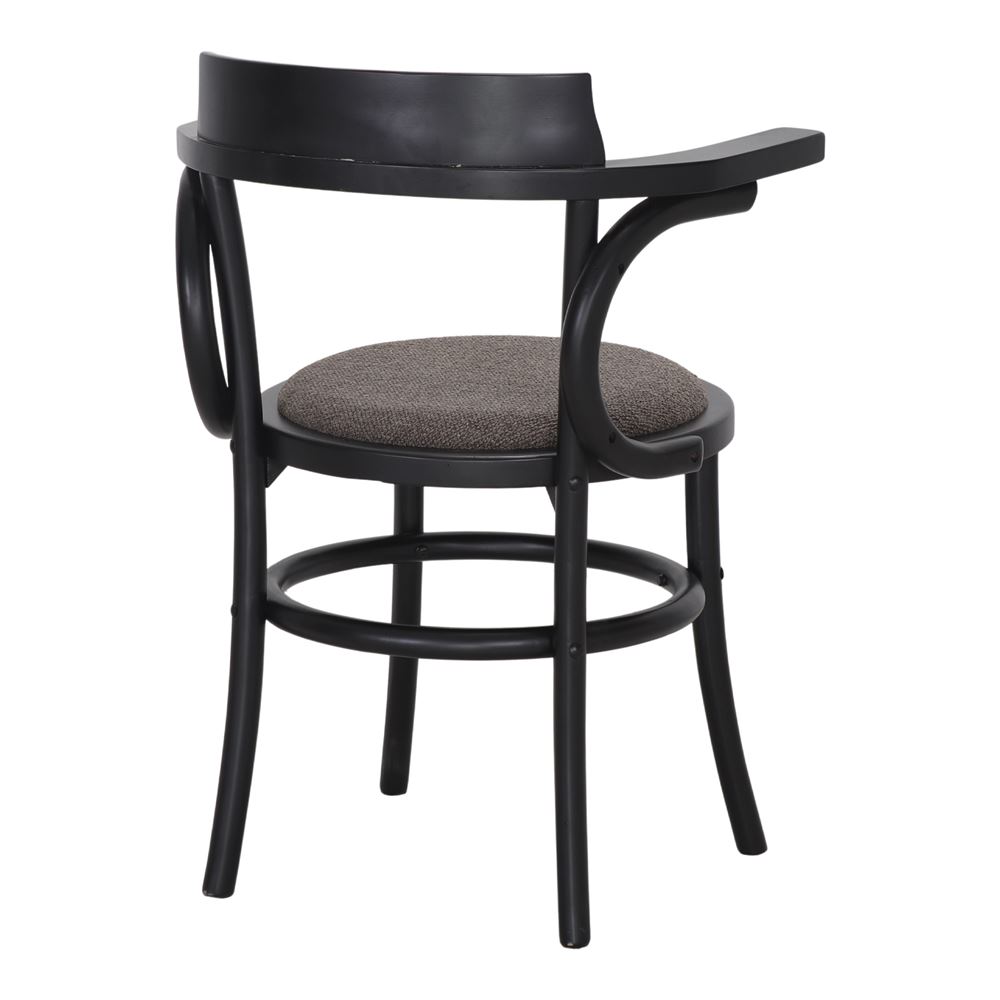 The truffle-colored textile upholstered seat adds a touch of sophistication and comfort, perfectly complementing the walnut finish of the wood. This neutral and elegant tone brings visual balance, making the chair not only a functional element, but also a focal point in the decor.