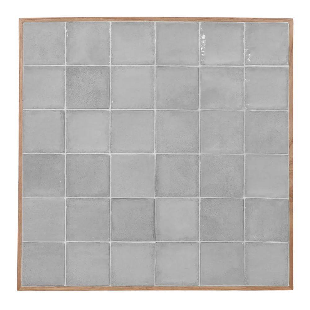 Made of solid chestnut wood with 10×10 cm. ceramic tiles. Wooden frame of 1 cm.