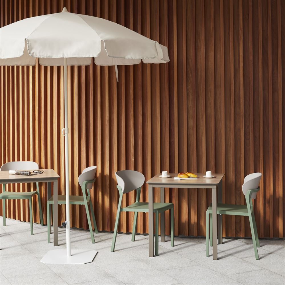 The Lake outdoor chair is a contemporary style with timeless lines. This fully wrap-around geometric design chair features a natural, dynamic and trendy colour scheme. Comfortable, simple, versatile, it is perfect for outdoors, but can also be used indoors. It is also stackable, a feature highly demanded by hospitality professionals.