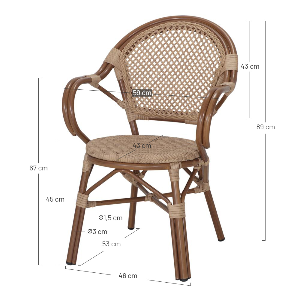 Measurements: 59x60x89 cm | Seat height: 45 cm | Armrest height: 67 cm