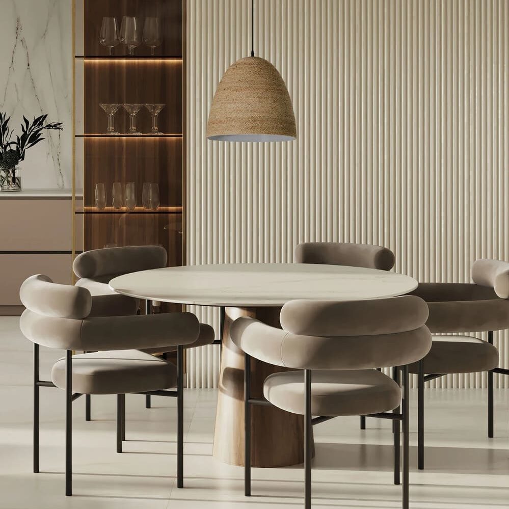 The Liana ceiling lamp brings warmth to the room thanks to its hemp covered body. This pendant is ideal for living rooms and dining rooms, its sober shapes contrasts with the richness of the material and makes it a good choice to give warmth and comfort to the room.