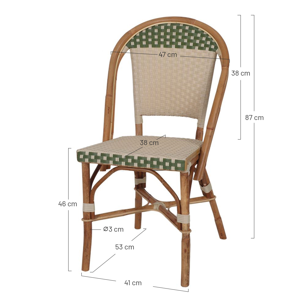 One of the trends of the season is our Lolita rattan chair, made from natural rattan and synthetic pith. Rattan is about to make its way into every home, and it’s no surprise: its solid weave lends texture to the look and has been used in some of the most iconic designs in decorating history. In this rattan chair, synthetic rattan brings a more contemporary feel than traditional rattan and is easy to maintain. Perfect for any interior. Mix it with other Bistro style furniture for the perfect combination. Its unique design is a recipe for an original piece that will add a Parisian touch to your space.