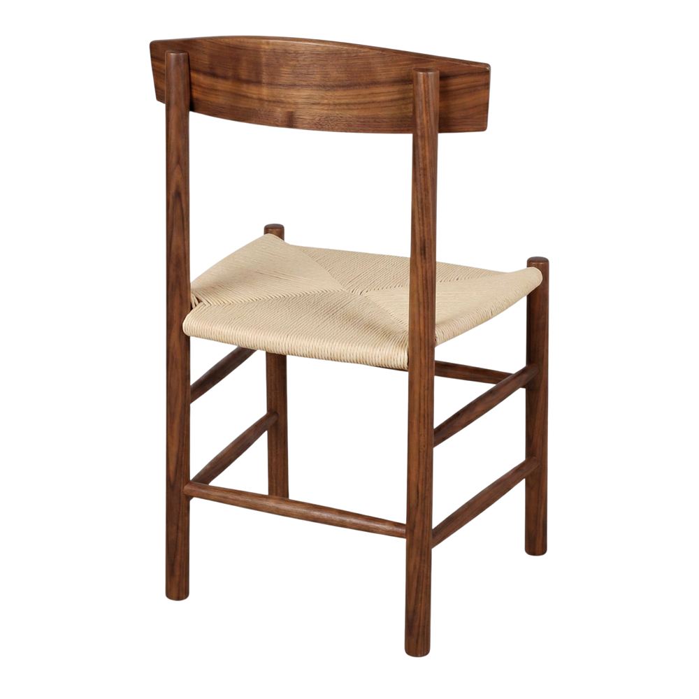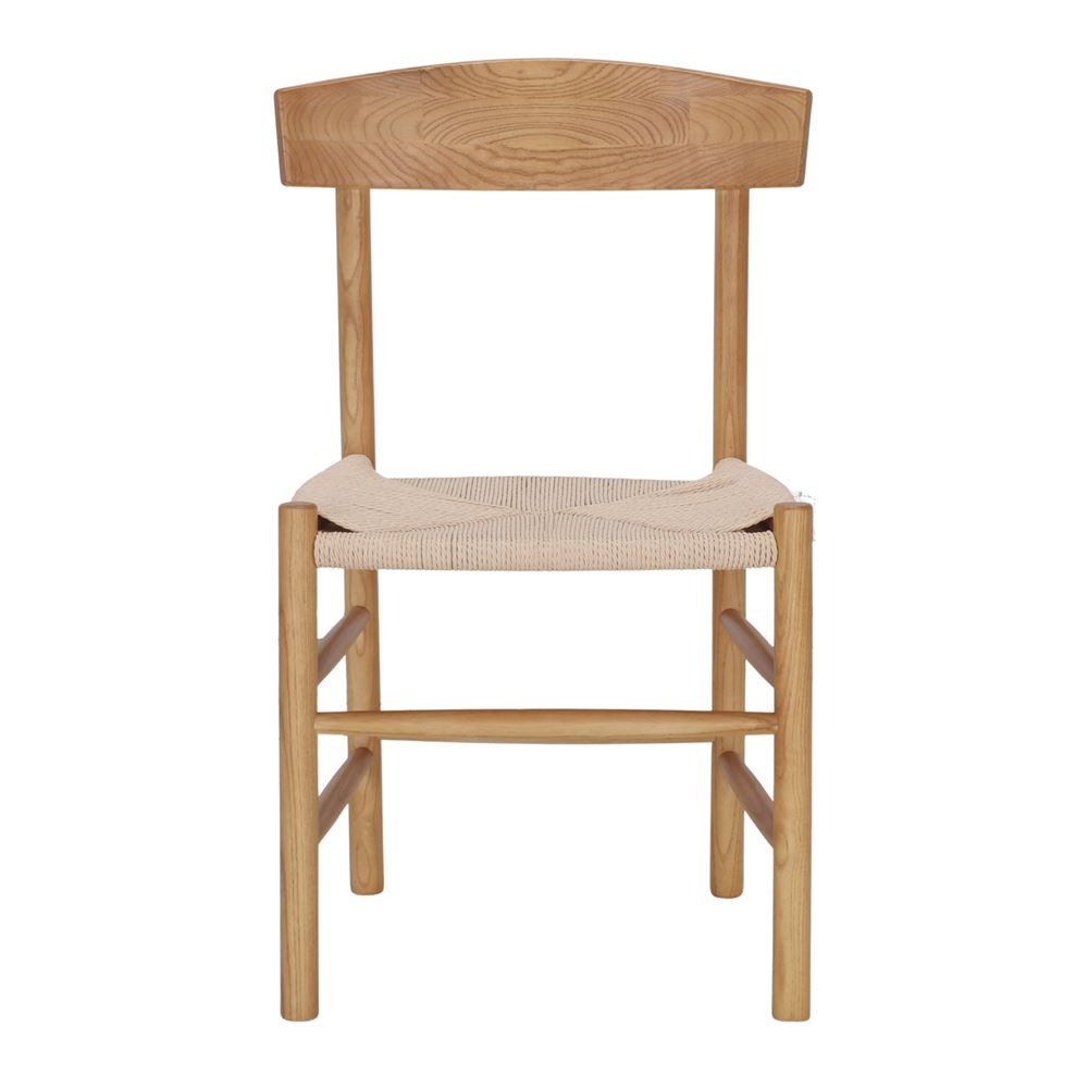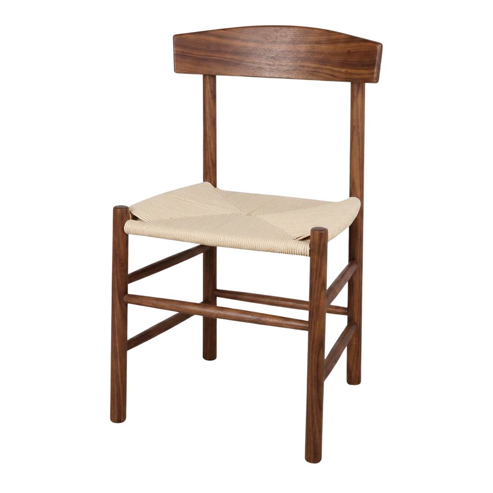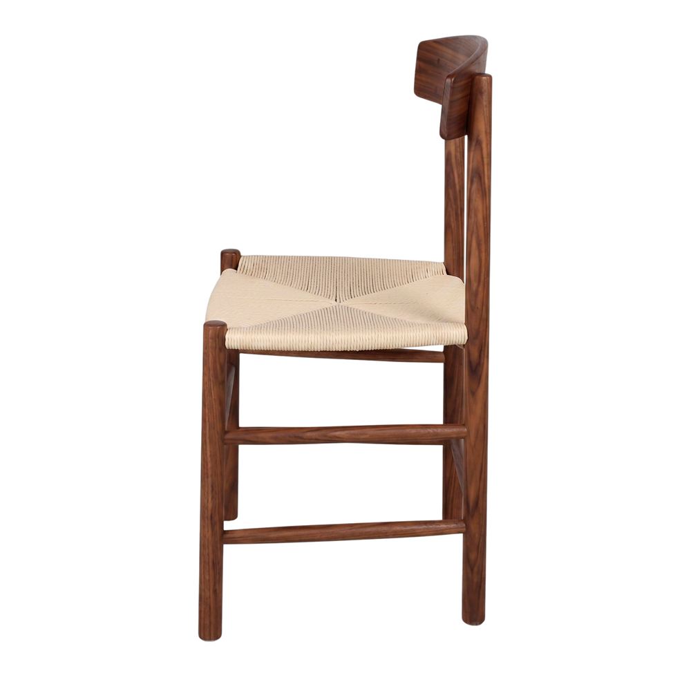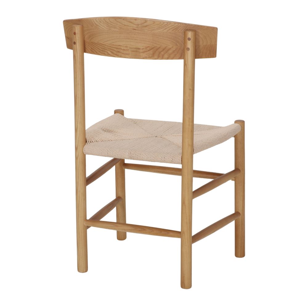 The backrest, also made of wood, has clean and smooth lines, following the principles of Scandinavian minimalism that seeks purity in shapes and materials. The seat, made of braided natural rope, adds a rustic, handcrafted touch that contrasts perfectly with the sobriety of the wood. The braided rope offers a comfortable and breathable seat, adapting ergonomically to the body.