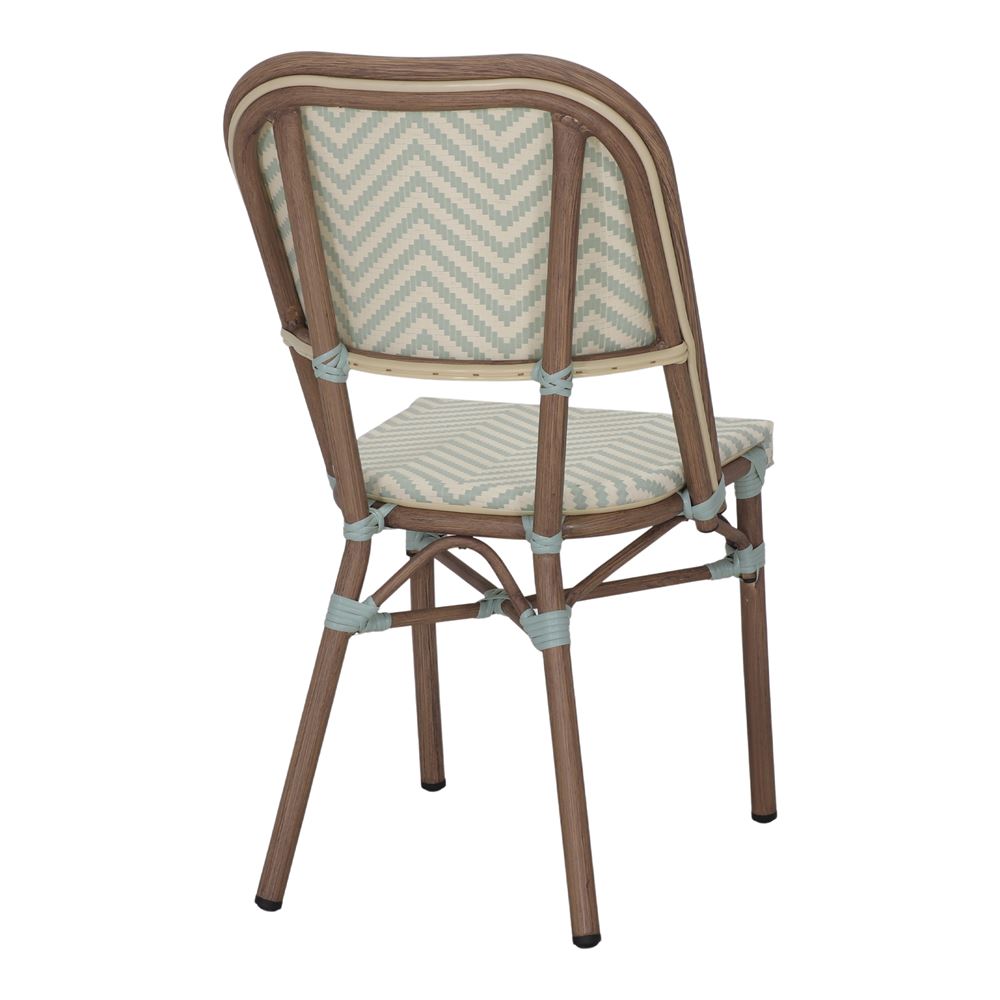 Our Bistro-style Marianela outdoor chair is made of aluminum with a faux rattan and synthetic pith finish. Synthetic rattan is about to make its way into any outdoor setting, and it’s no surprise: its solid weave lends texture to the look and has been used in some of the most iconic designs in decorating history. In this outdoor chair, synthetic rattan brings a more contemporary feel than traditional rattan and is easy to maintain. Perfect for a patio, deck or garden. Mix it with other Bistro style furniture for the perfect combination. Its unique design is the recipe for an original piece that will add a Parisian touch to your space.