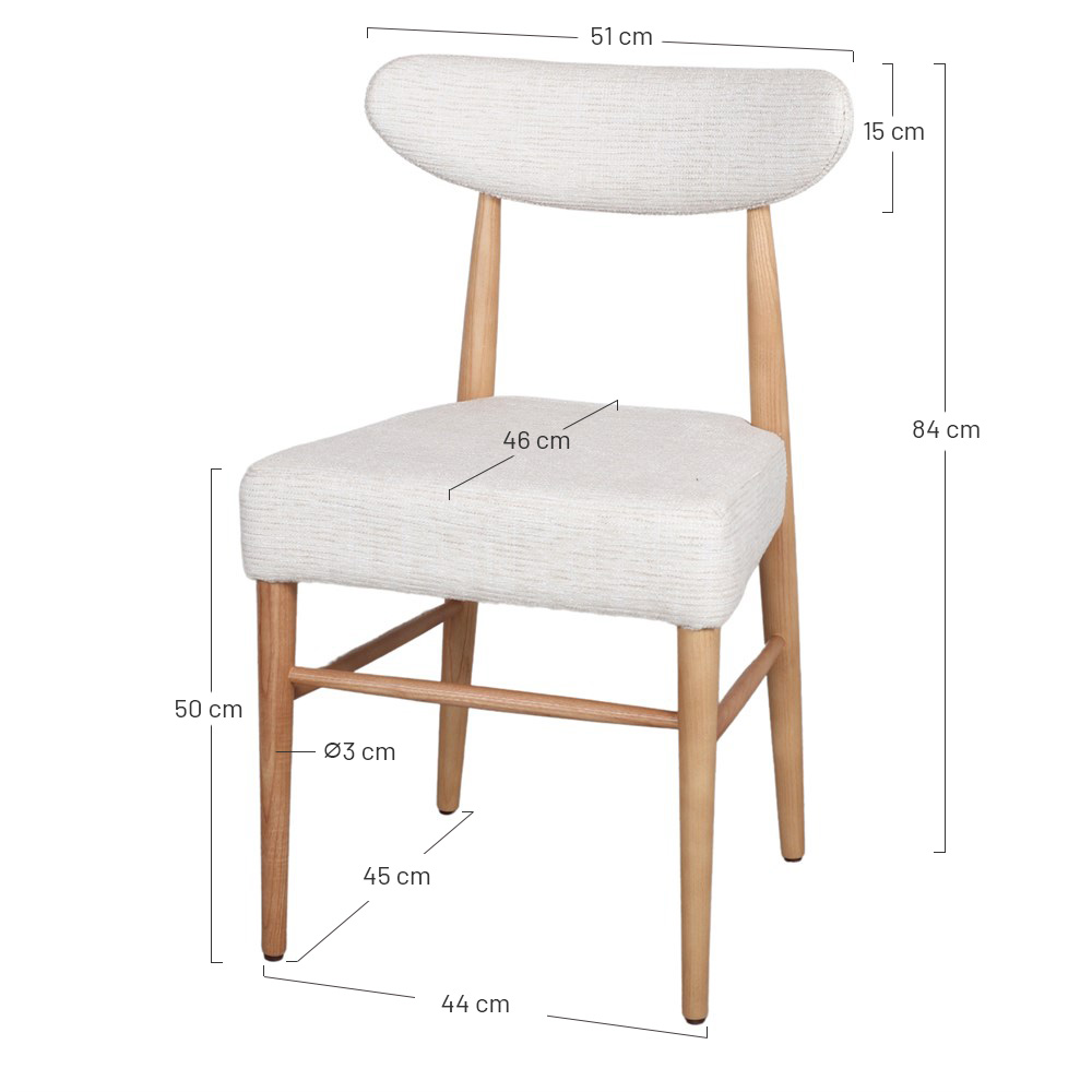 The Marlene upholstered wooden chair is the latest trend. Nordic style, it is ideal for rooms with character and personality, providing distinction with its upholstered seat. Its combination with wood and its elegant curves are the recipe for an original piece that will give a Scandinavian touch to your dining room. The seat is also padded and provides all the expected comfort.