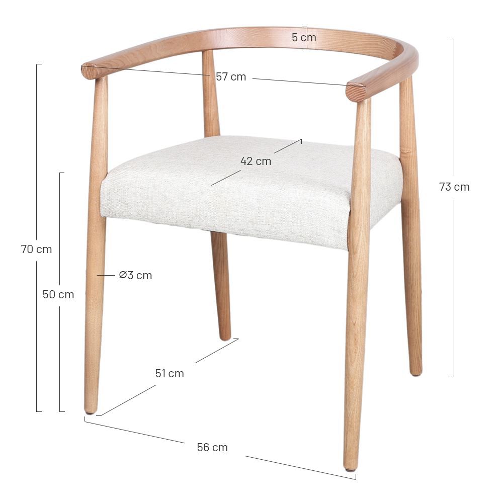 Measurements: 57x52x73 cm | Seat height: 50 cm | Armrests: 70-72 cm