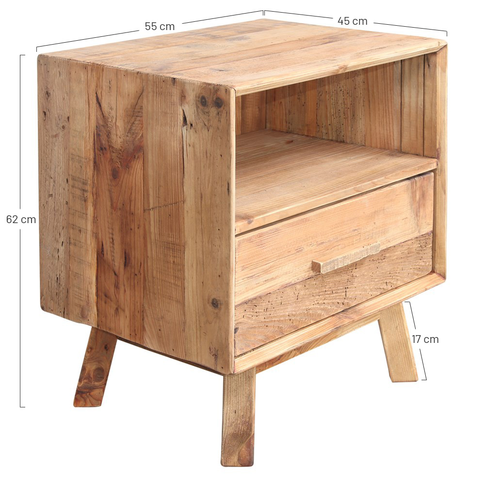 Wooden night stand Rustic style, made of recycled pinewood with 1 drawer.