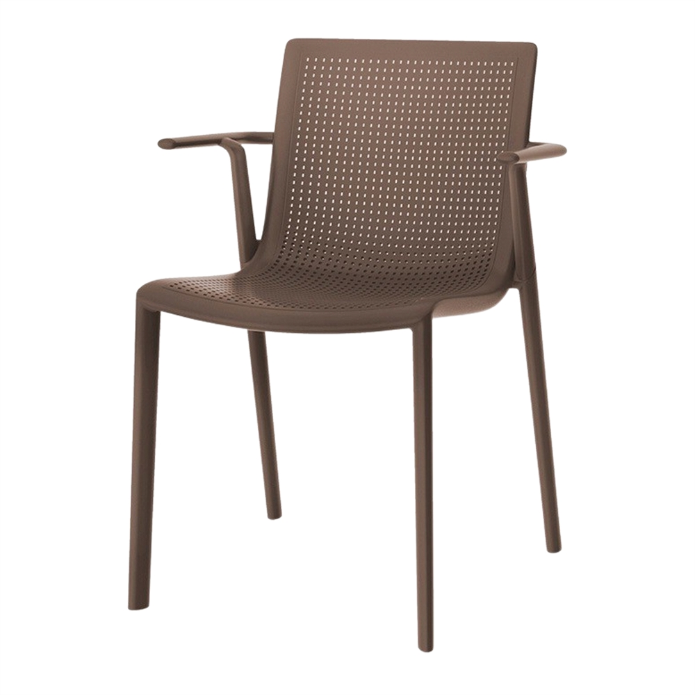 The Nawel outdoor chair with armrests is made of injection-molded PP. Suitable for outdoor use, this chair is UV-protected and stackable for easy storage. A perfect outdoor chair for terraces and outdoor dining tables.