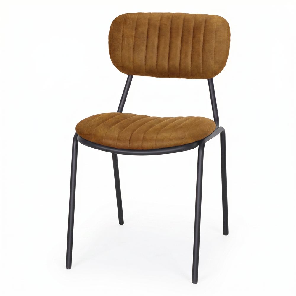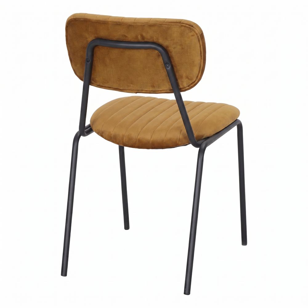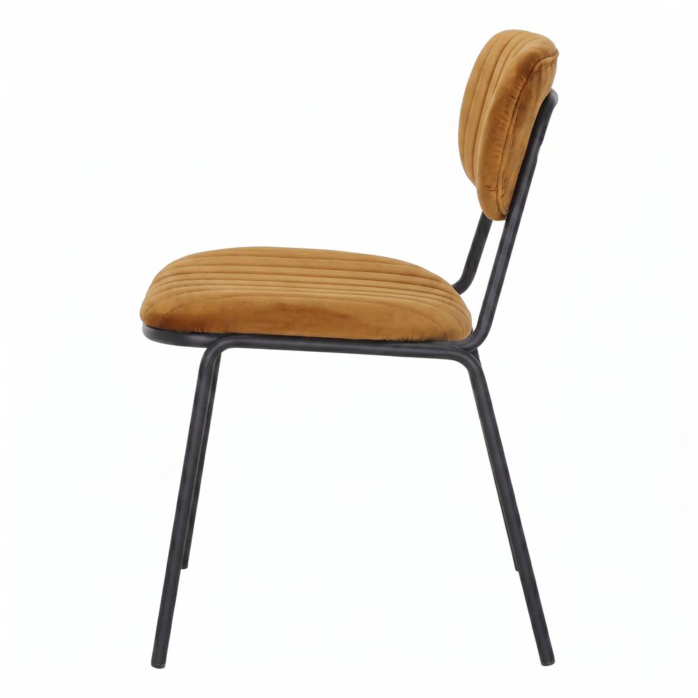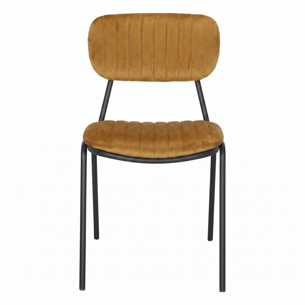 The true heart of this piece lies in its seat and backrest, upholstered in a high-quality curry-coloured fabric. This vibrant, spicy shade not only adds a much-needed burst of visual energy to the room, but its soft texture also invites you to enjoy long, leisurely after-dinner chats. The colour contrast between the harshness of the dark steel and the vibrancy of the curry-coloured fabric creates a fascinating visual balance, ideal for homes with character, designer cafés or creative studios that shun convention. By choosing the Nevelia Chair, you are opting for meticulous ergonomics where the strength of iron blends with the utmost elegance.