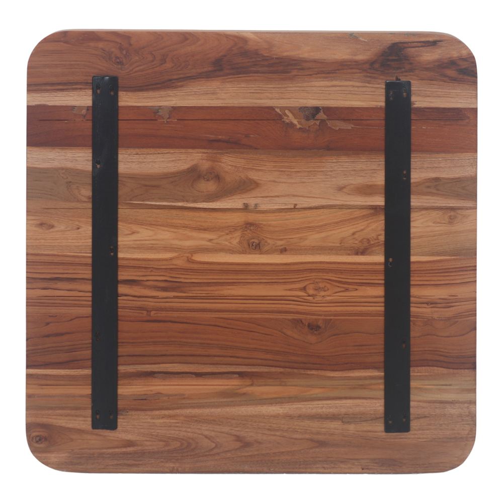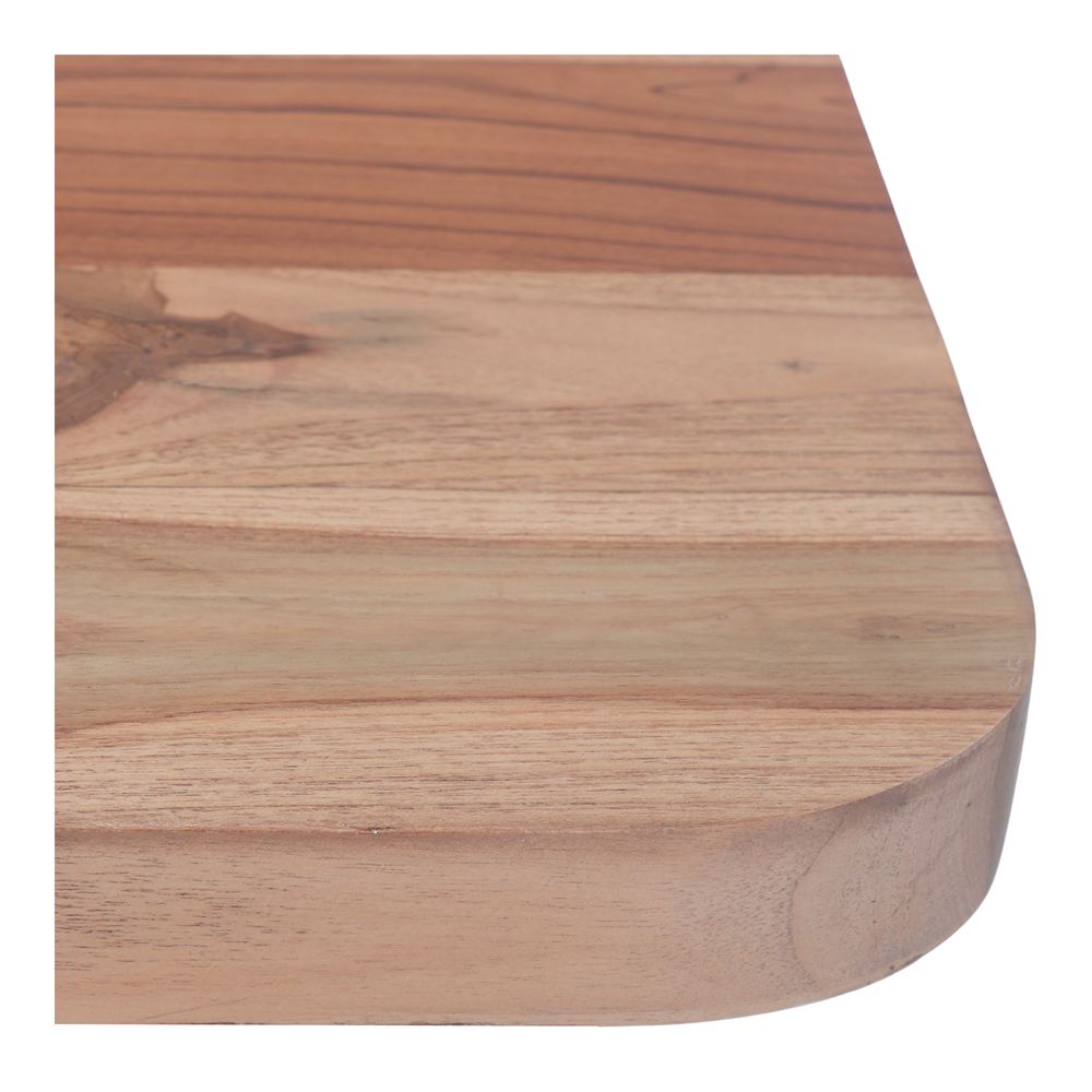 The top has a natural finish that highlights the grain, nuances, and unique characteristics of teak wood, making each unit one of a kind. As this is a handcrafted product, the tone of the wood may vary between batches, lending each project exclusivity and authenticity.