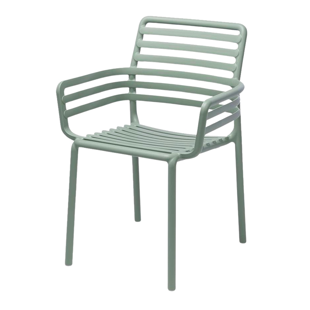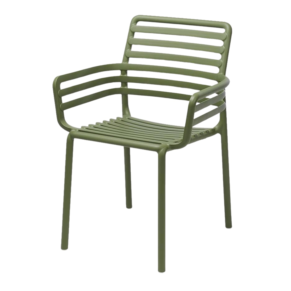 The Nogar outdoor armchair, with a fresh, light and ergonomic design, is an outdoor seat in fiberglass-reinforced resin, inspired by slats reinterpreted in a contemporary key. It is easy to handle, stackable, easy to clean and fully recyclable.