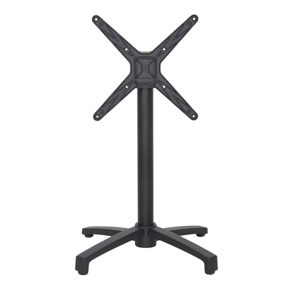 Our Owen textured table frame is a folding frame made of metal and in black color. In addition, the legs are levelable. This frame makes a perfect combination with our wooden tabletops. It is suitable for both indoor and outdoor use, and it can be used in both home or catering premises. This frame is very stable, as it includes removable weights under the nails.