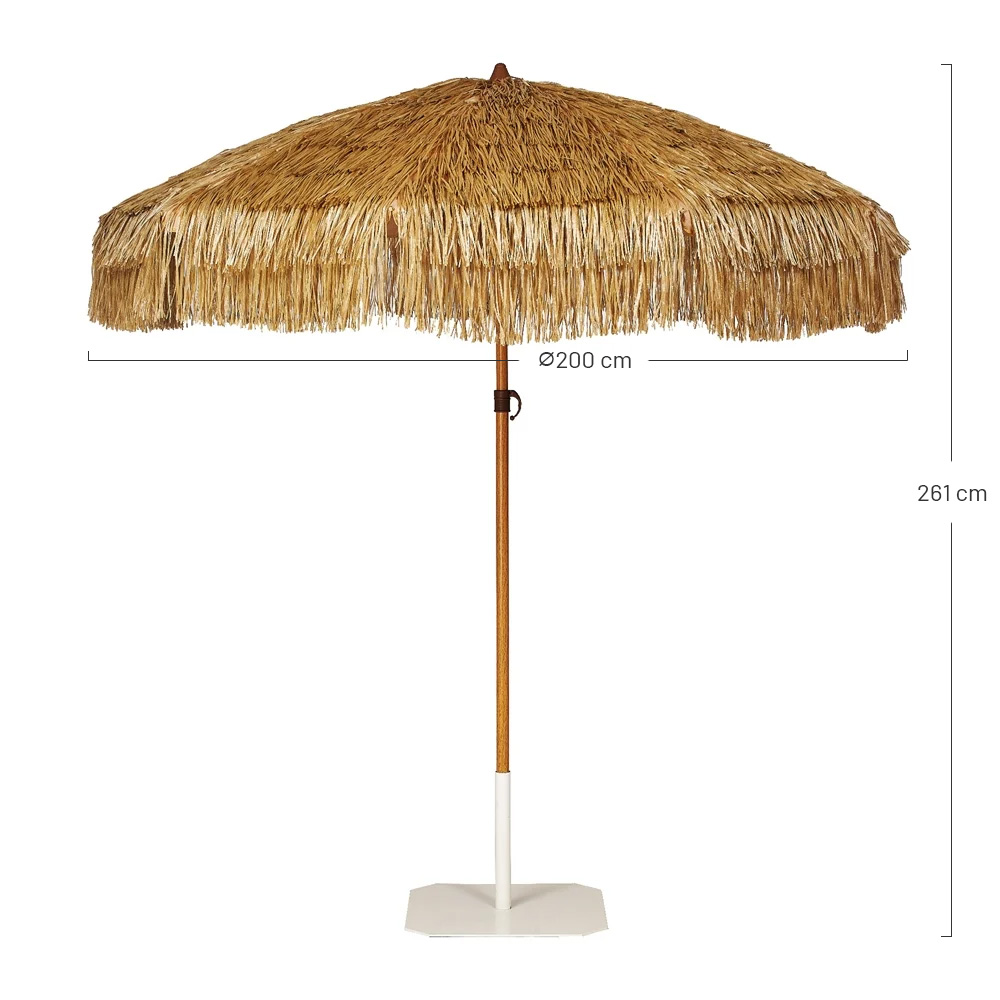Enjoy the sun without worries with the Manilex parasol made of synthetic raffia fiber. With fiberglass rods for greater resistance and UPF50+ sun protection.