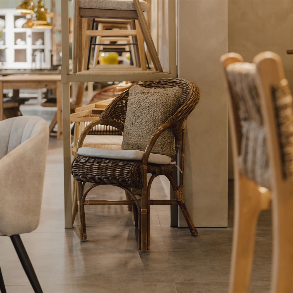 It’s trendy, fashionable, the latest trend in decoration: rattan is the material that is breaking through this season. Our Petras rattan chair stands out for this, and for its exotic design. Perfect for your home, is a comfortable chair, with cushion included in clear color, which makes it even more comfortable.