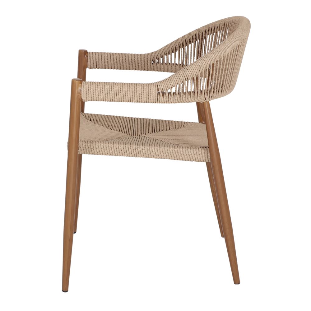 Our Piamonte outdoor chair has an aluminum frame with a painted finish. The seat and backrest are made of braided rope. This outdoor chair has a Mediterranean style. Thanks to its manufacturing materials, it is a very comfortable and light chair, besides having a very easy maintenance, which stands out for the convenience when it comes to cleaning it. It is ideal for hospitality, for all these features and for being a chair with a nice design and an original combination of materials and colors.