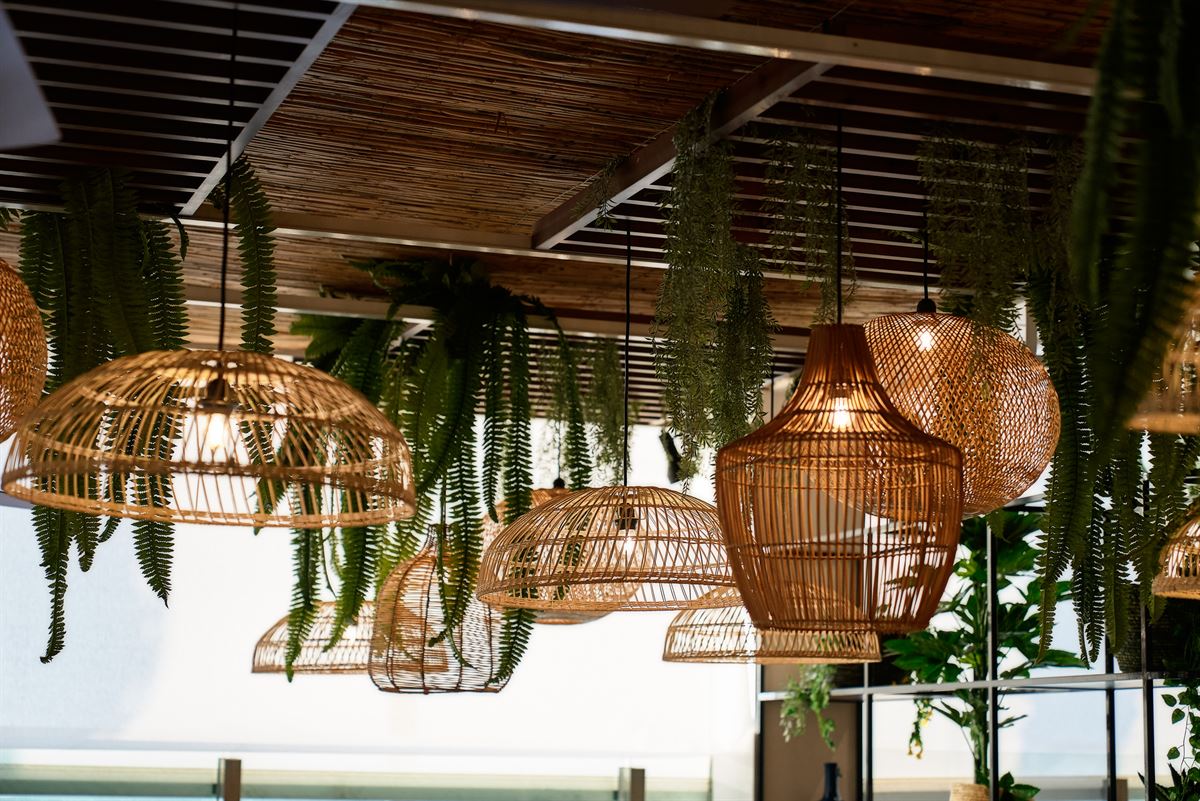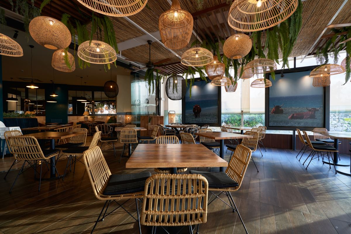 With a predominance of marine, brown and earth colors in chairs and tables; natural materials such as wood, rattan or rope in both chairs and screens; and the freshness of black metals in lighting and shelves, or glass in some of its lamps, all to envelop us in a space full of details and very warm, enjoy delicacies surrounded by a careful decoration.