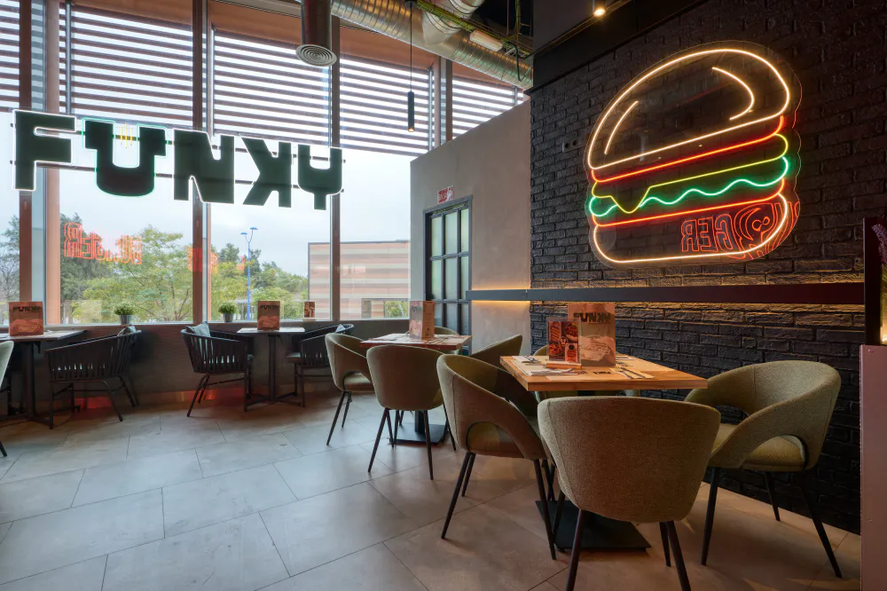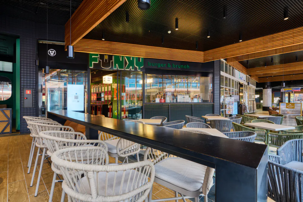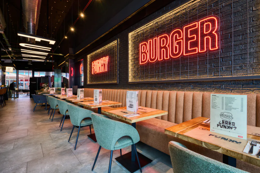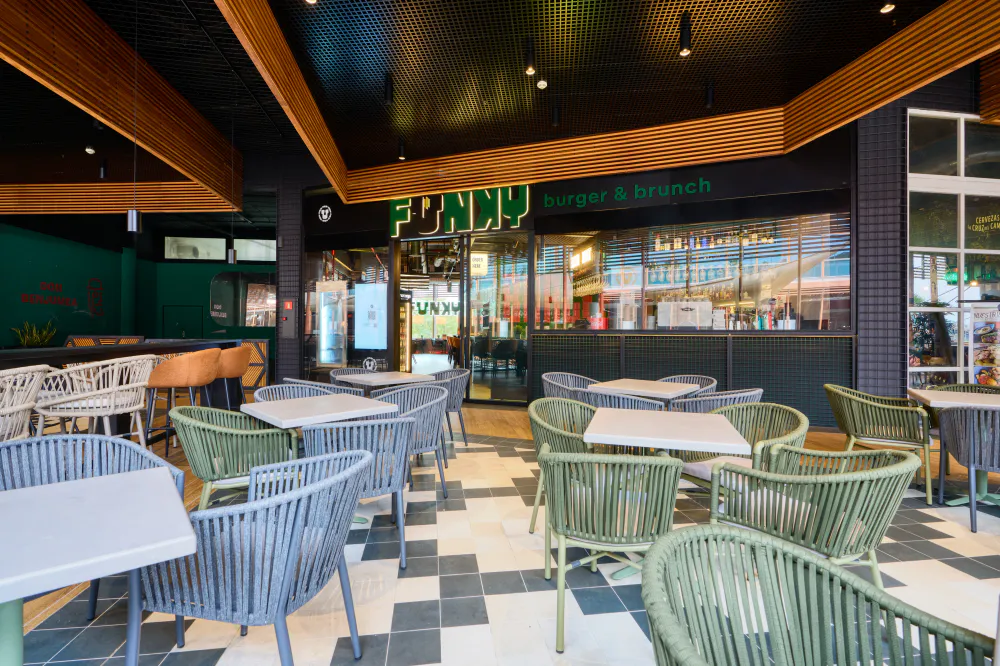 The furniture at Funky Bar plays a key role in the restaurant’s identity, reinforcing its urban and laid-back character both indoors and outdoors. Each area has been furnished with pieces designed to combine functionality, comfort and an aesthetic that is consistent with the venue’s fresh, contemporary image.