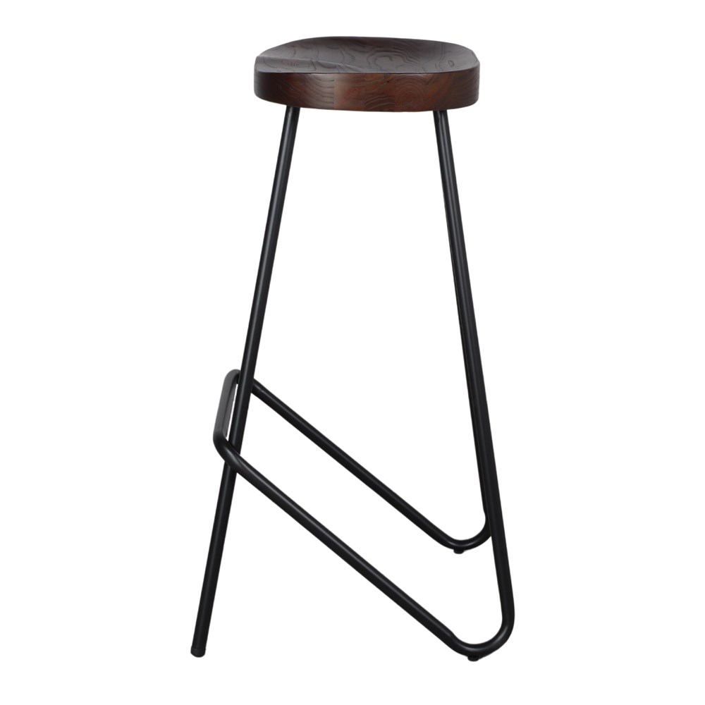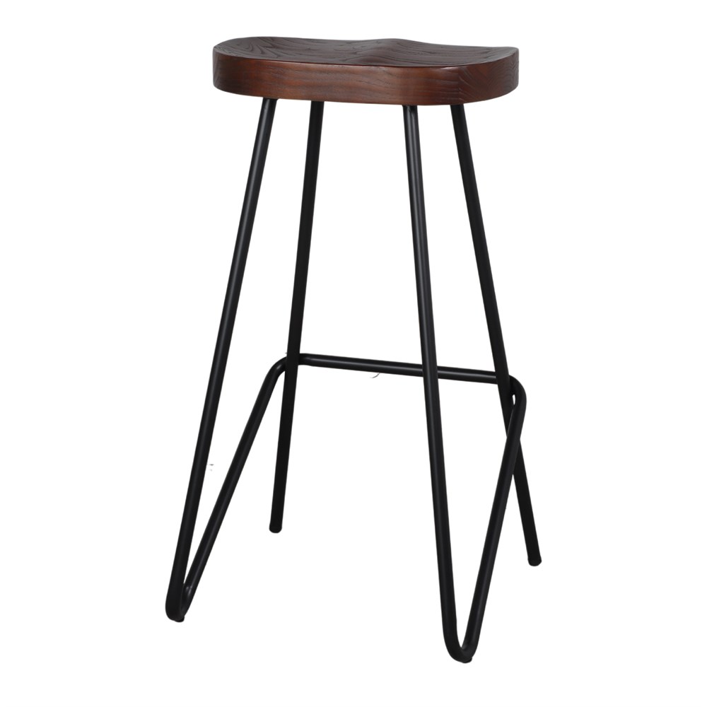 High stool Industrial style. Tubular steel frame with black color finishing and a tropical wood seat.