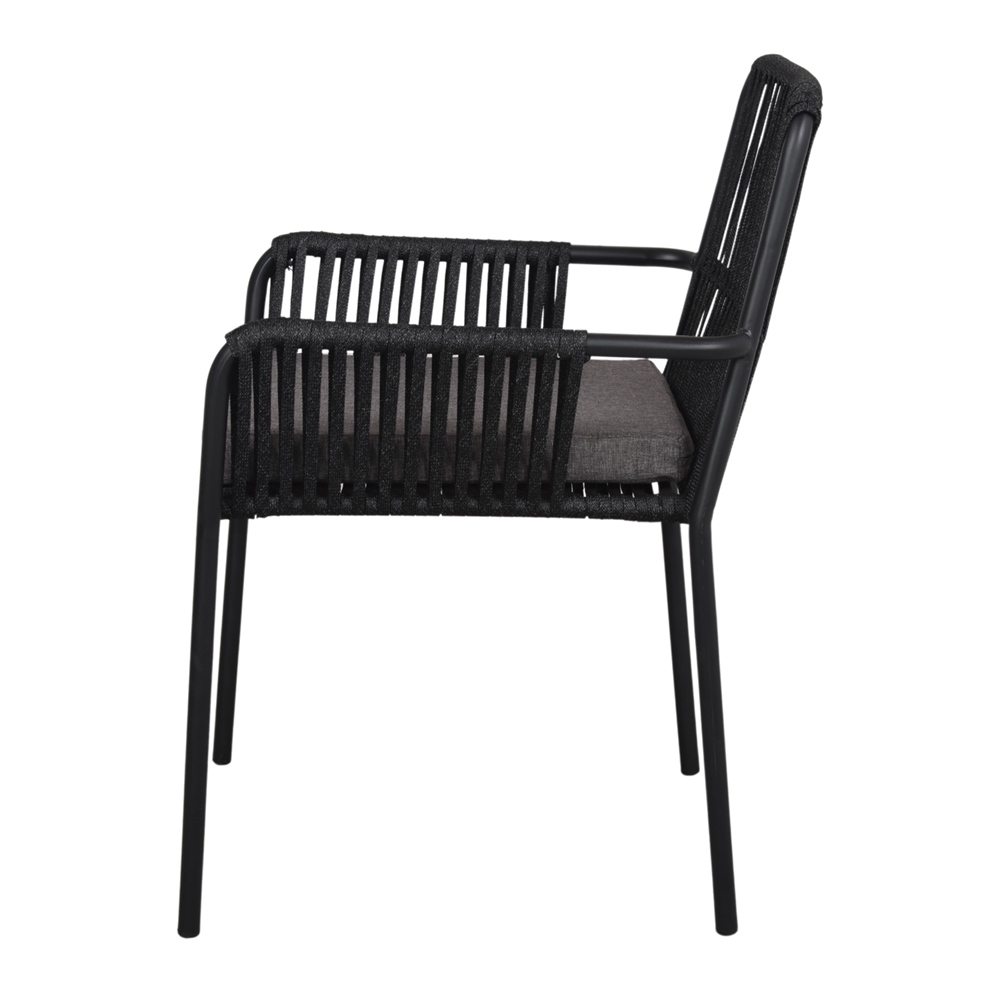 Sit on one of the biggest trends of this season with our Romeo cord and metal chair. Braided cord is now arriving to our indoor spaces and that’s not a surprise: this solid fabric gives texture to the chair’s look, and it’s been used on several iconic designs of the history of decoration. Braided cord gives a contemporaneous touch to the chair, and its easy to maintain. Perfect for a garden or a patio, you can mix it with other Nordic style furniture for the perfect combination. Its unique design is the recipe to an original piece that will give your dining room a very organic look.