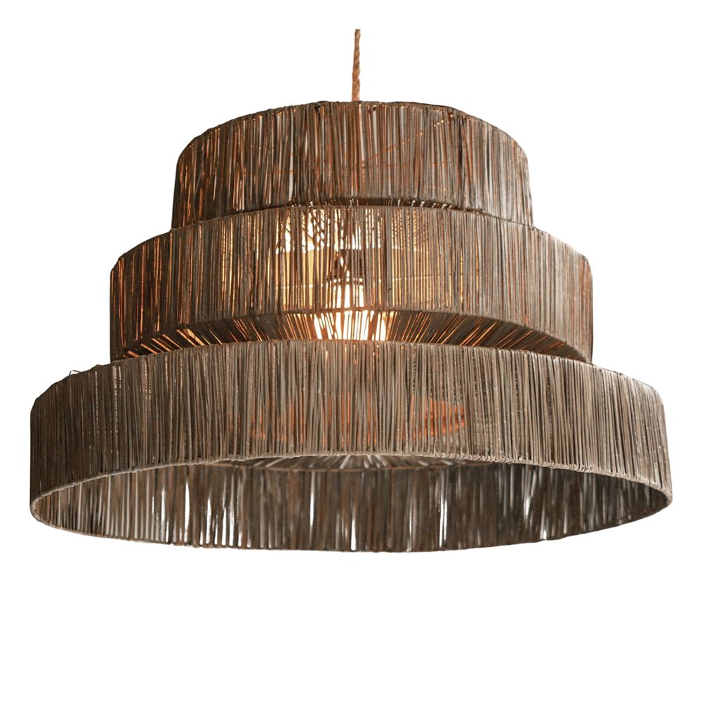 It is a versatile accessory that can be placed in different rooms, as it is suitable for both indoor and covered outdoor use, ideal for porches, terraces, or semi-open areas where a cozy touch is desired without sacrificing style. It is important to note that, like all shades made from natural fibers, it may experience some discoloration over time if exposed to outdoor spaces.